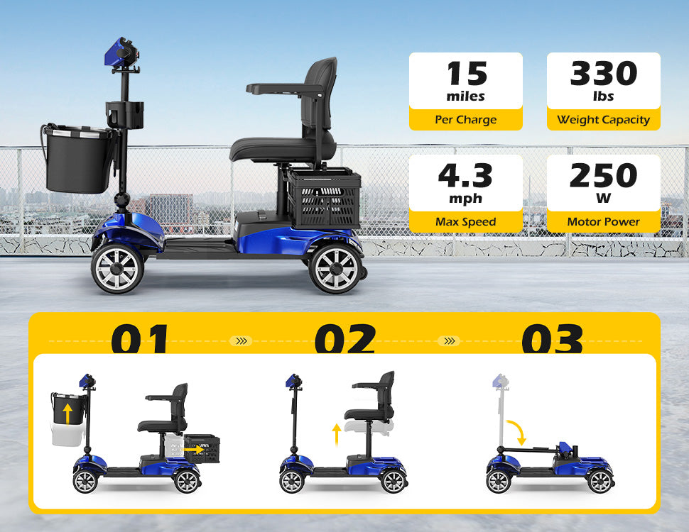 6-hour charge, 15-mile range, 0–4.3 mph.